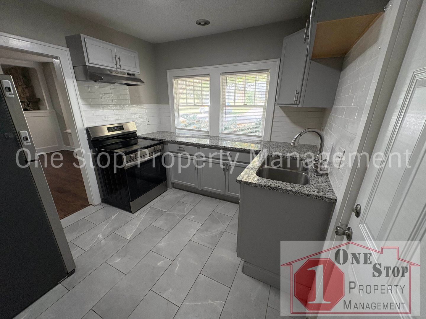 Inside, enjoy freshly painted interiors and rich wood flooring, creating a bright and inviting atmosphere throughout. The updated kitchen features granite countertops, stainless steel appliances, modern sleek gray cabinetry, and subway tile backsplash, offering both function and style.
