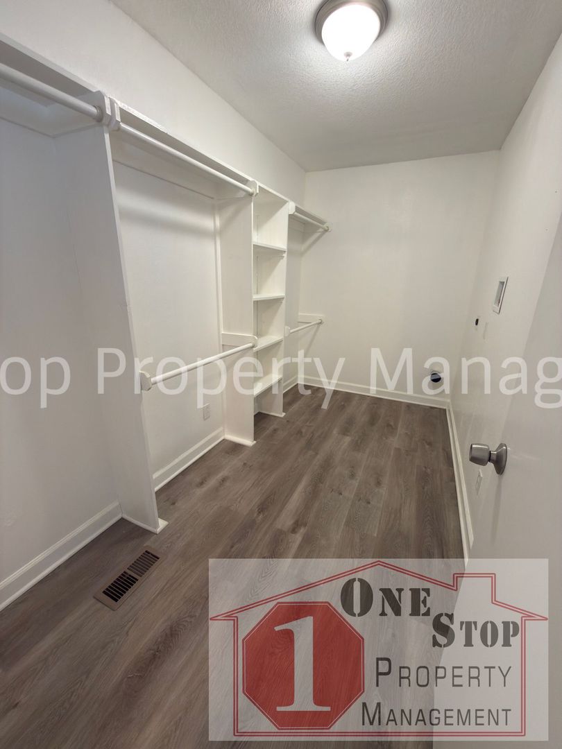 Step into a large, open floorplan featuring neutral tones and gorgeous accents. Beautiful wood flooring runs throughout, leading to spacious rooms with large closets.